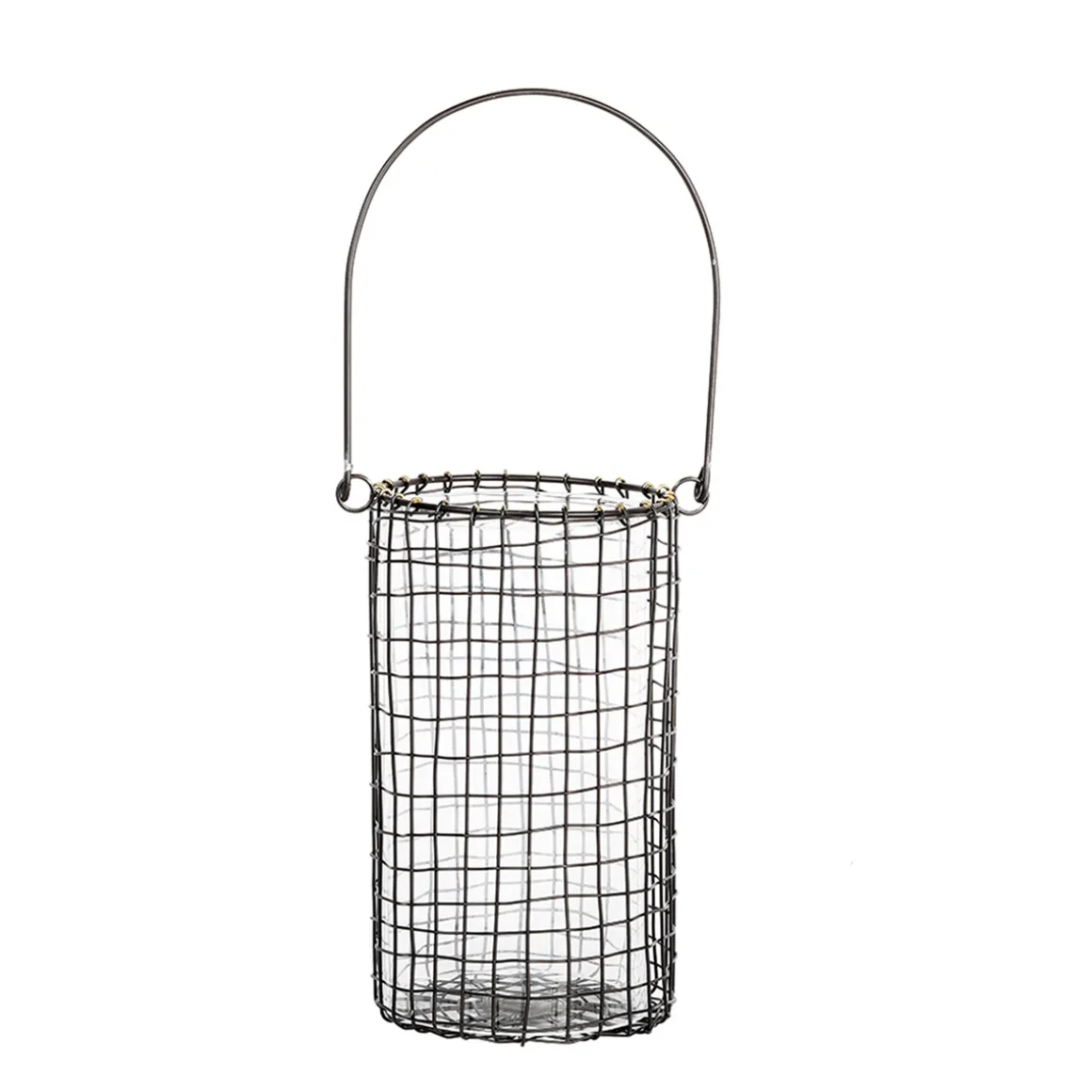 Windlicht Mathilda, Windlicht mit Henkel in Gitteroptik, 30x20cm, Metall-Glas, WMG Grünberger