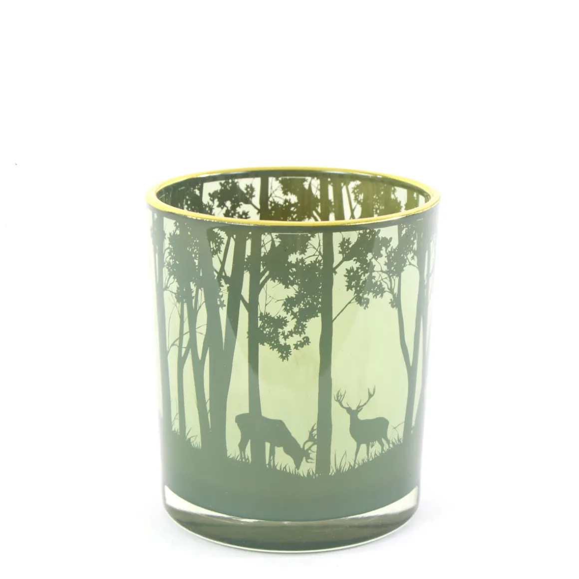 Windlichtglas Wald, Hirsche im Wald, grün, 7x8cm, Glas