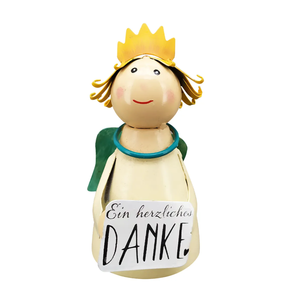 Zaunhocker Engel Schutzengel, Metallengel mit Krone und Schild: Ein herzliches Danke, 16cm