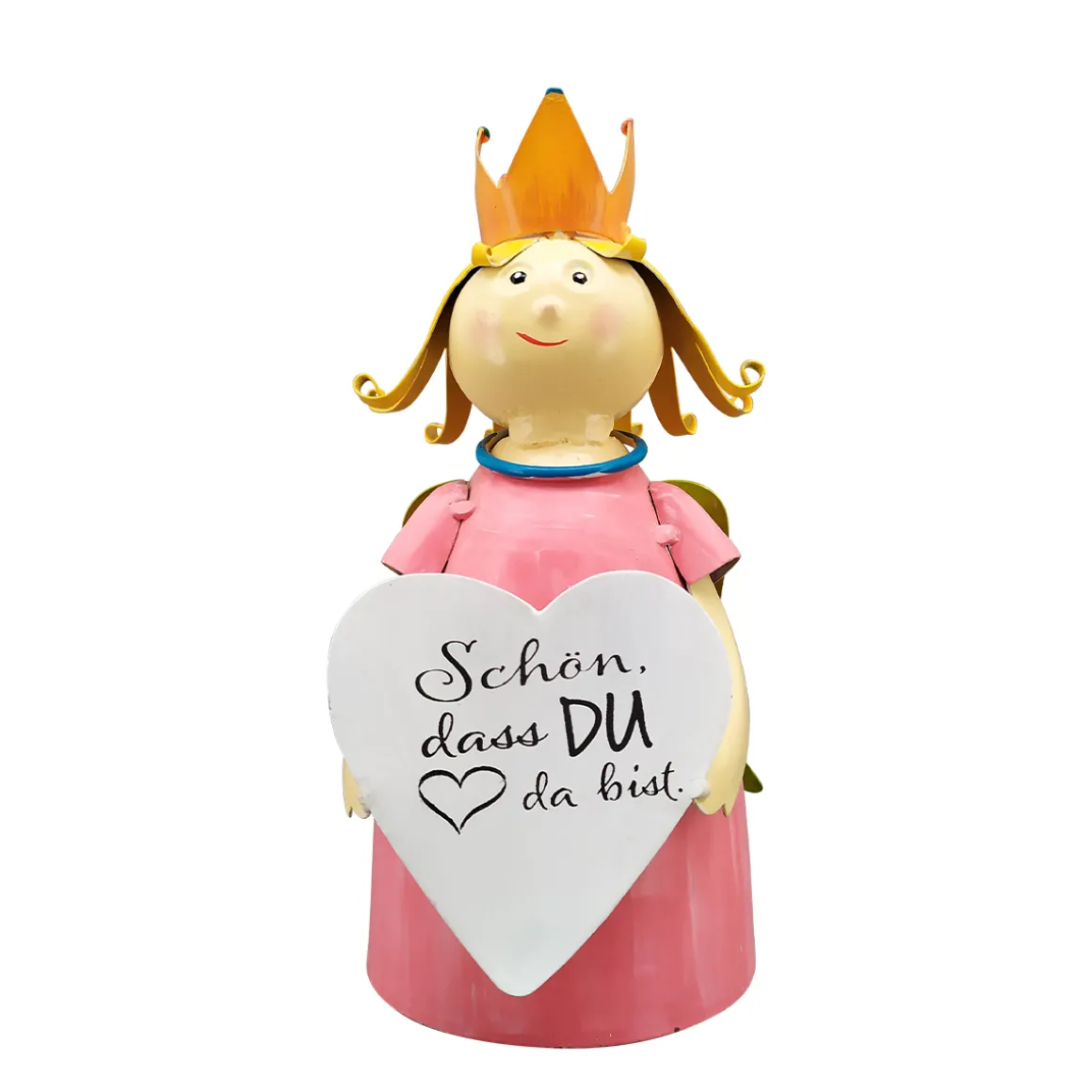Zaunhocker Engel Schutzengel, Metallengel mit Krone und Schild: Schön, dass du da bist, 21cm