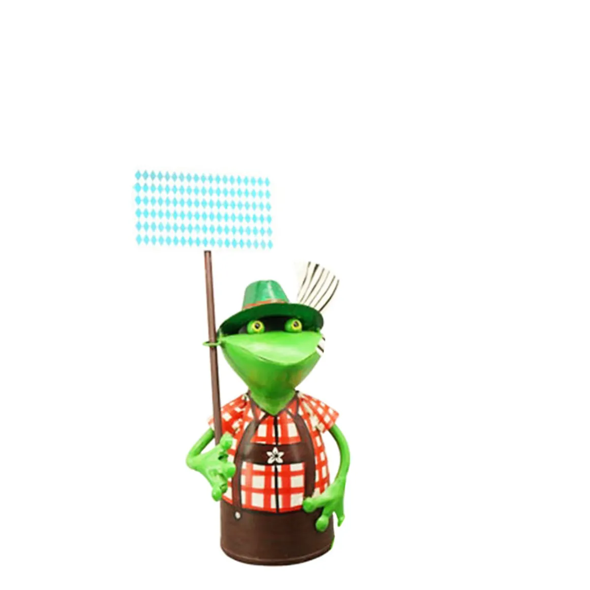Produktinformationen „Zaunhocker Frosch Landhaus, Metallfrosch in Lederhose mit Bierkrug, 20cm“