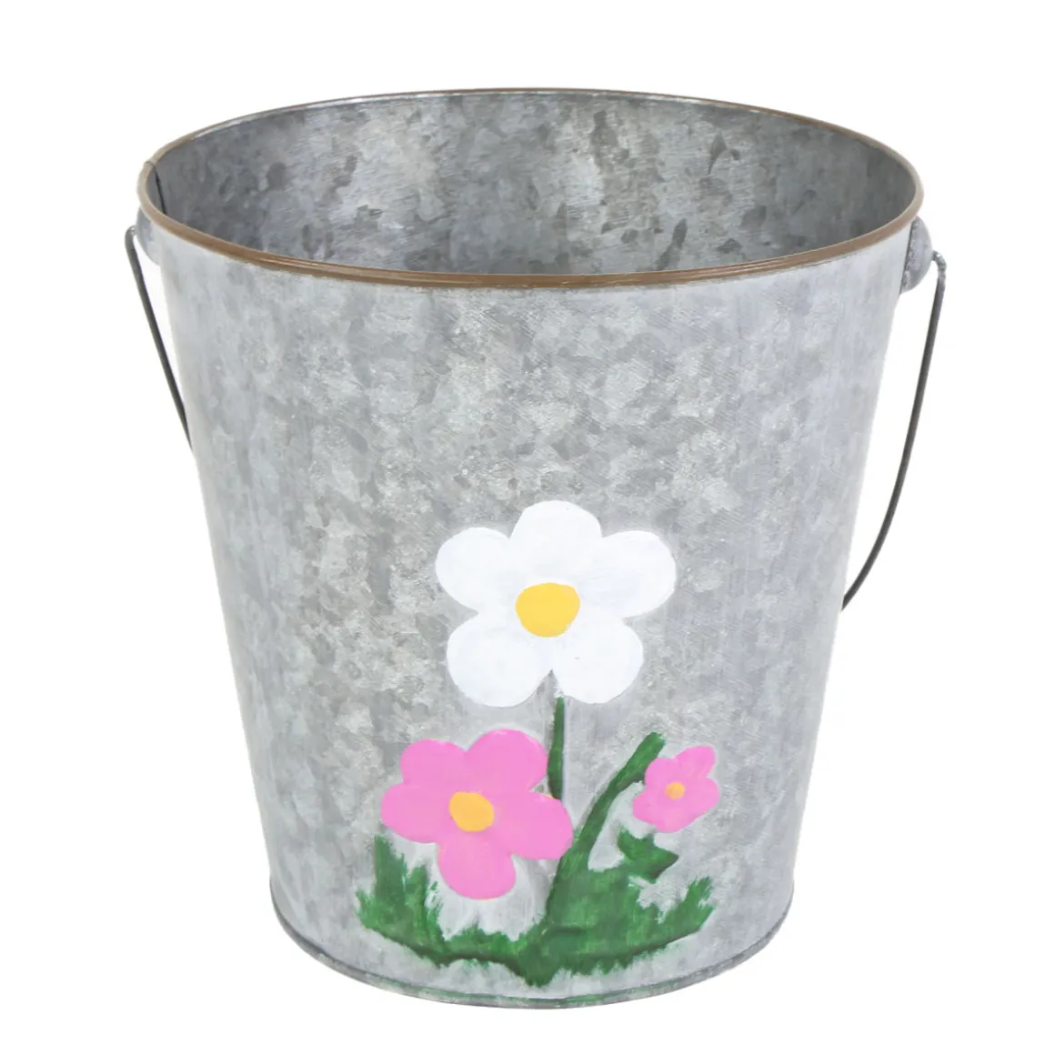 Produktinformationen „Zinkeimer Flores mit Henkel, Übertopf mit Blumen weiß-rosa, 19cm“