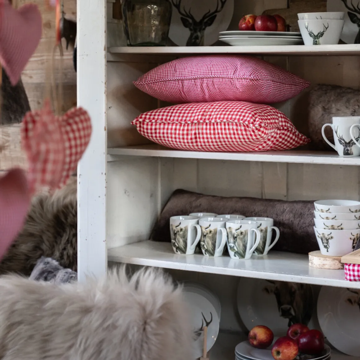 Baumwoll Kissen Karo weiß-rot, groß, 55x55cm, Mars & More