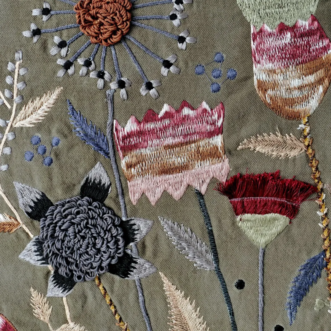 Baumwoll-Leinen Kissen Ramoni, Blumenkissen salbeigrün, rosa-beige bestickt, 45x45cm, Boltze Home Collections