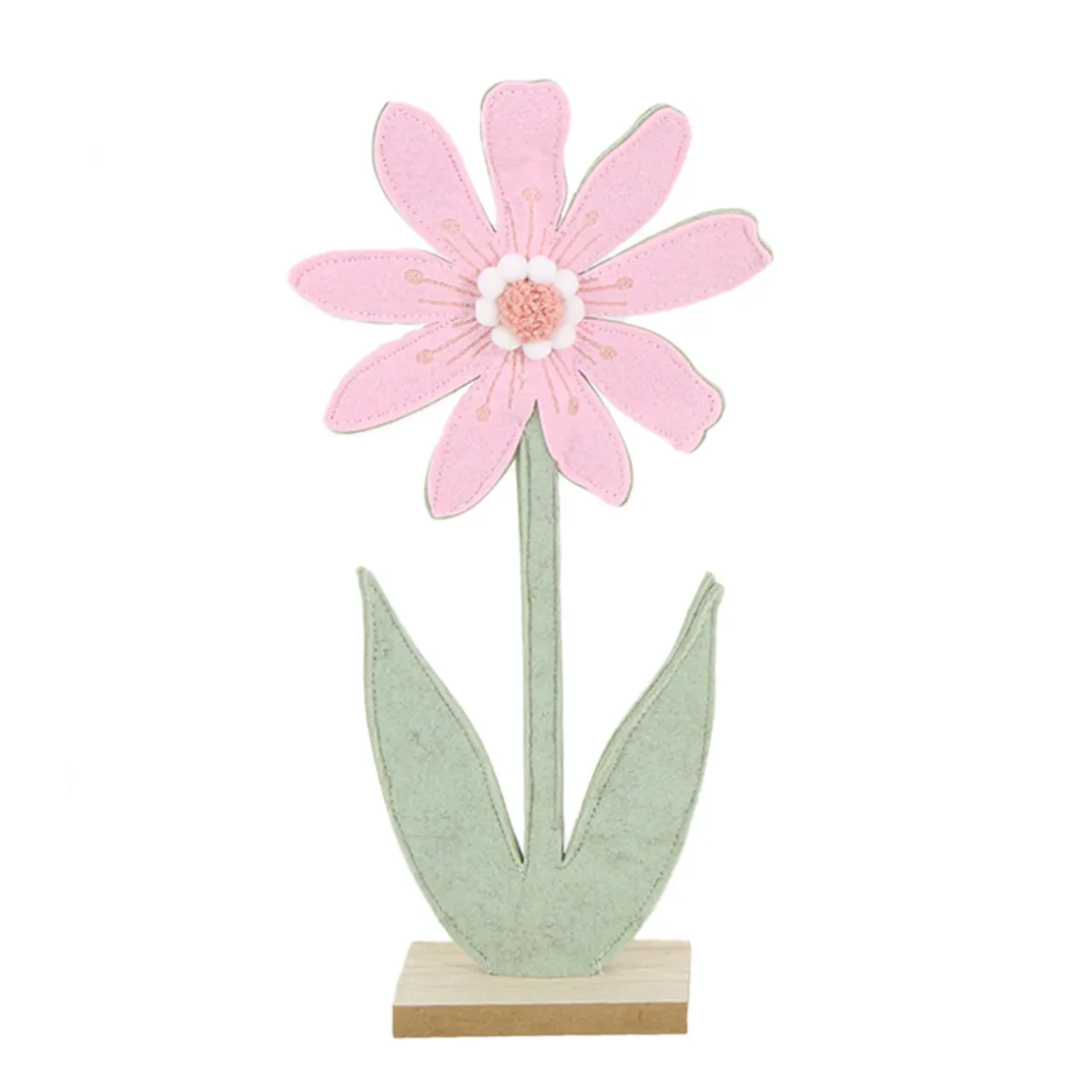 Deko Blume, Filzblume rosa auf Holzsockel, 33cm