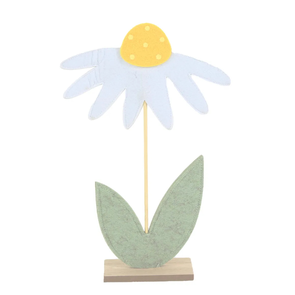 Deko Blume Margarite, Filzblume gelb-weiß auf Holzsockel, 34cm