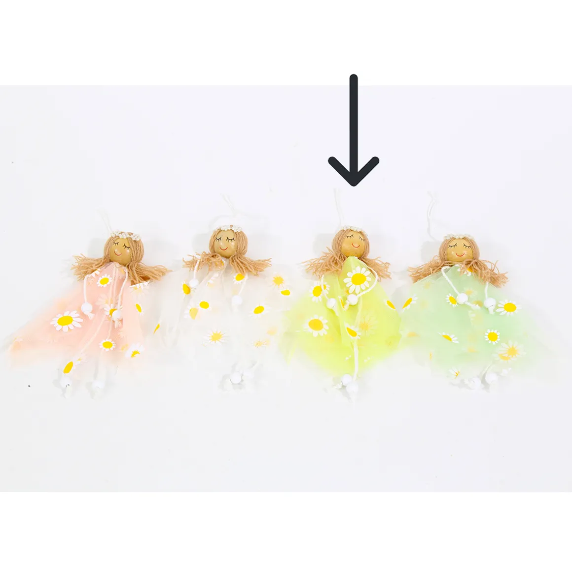 Produktinformationen „Deko Blumenmädchen, Blumenfee mit Blumenkleid gelb, 20cm, Hänger“