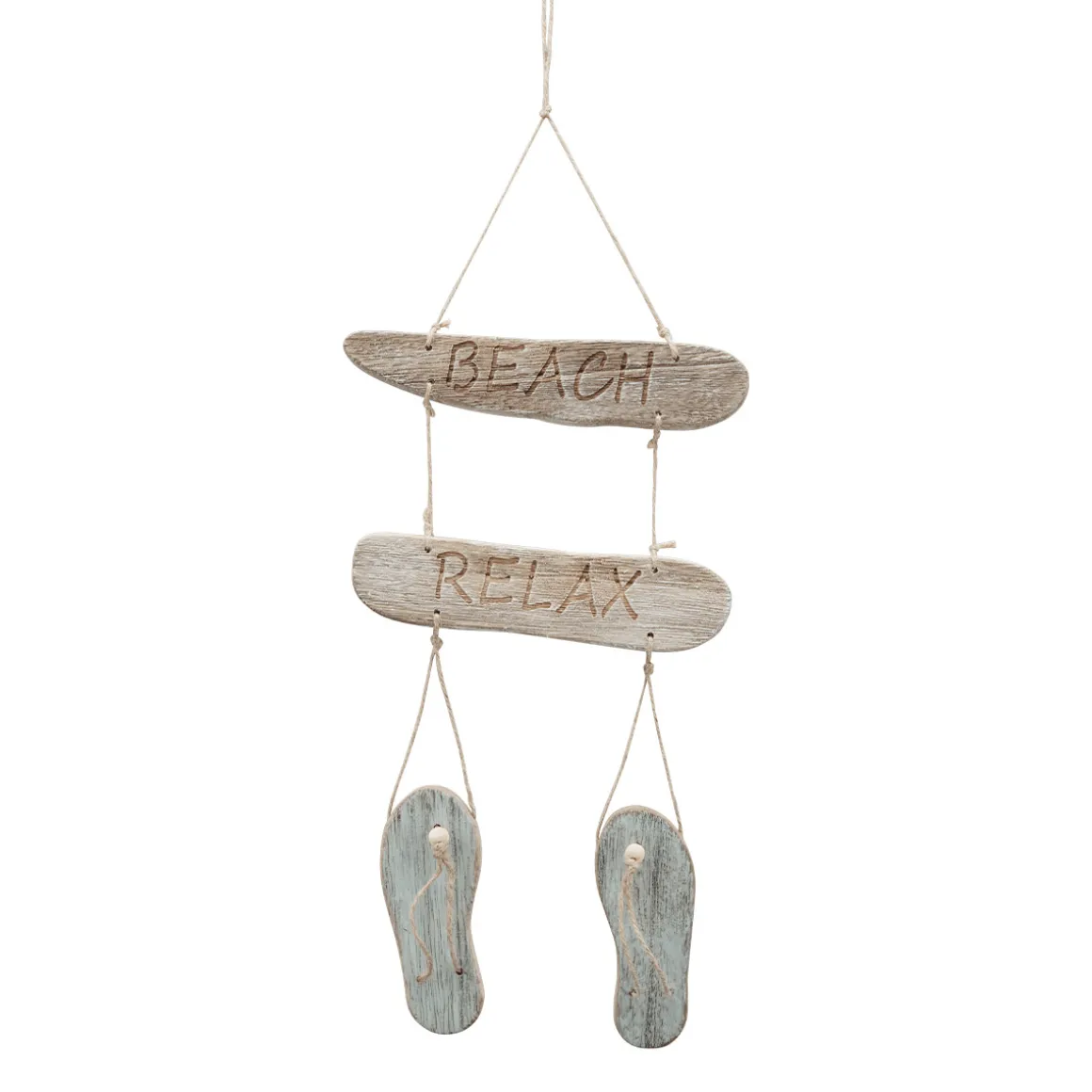 Deko Flip Flop grau aus Holz zum Hängen, Holzschild Beach Relax, 54cm