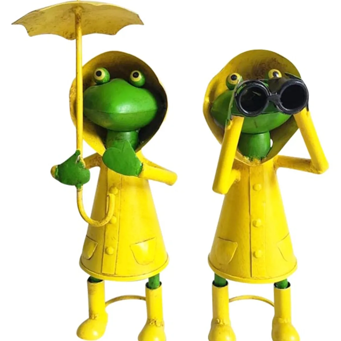 Deko Frosch Heini, Metallfrosch mit Regenmantel und Regenschirm, 33cm