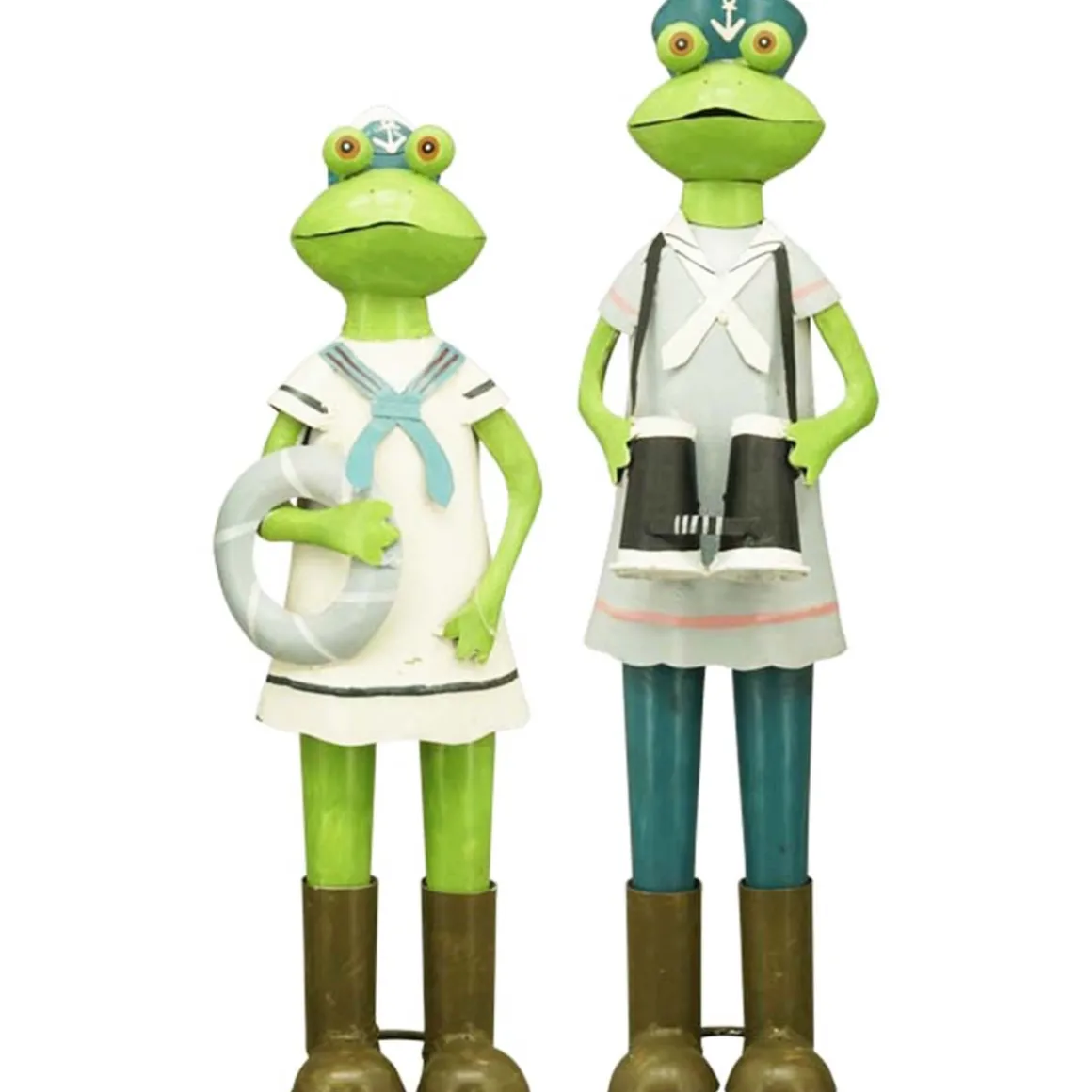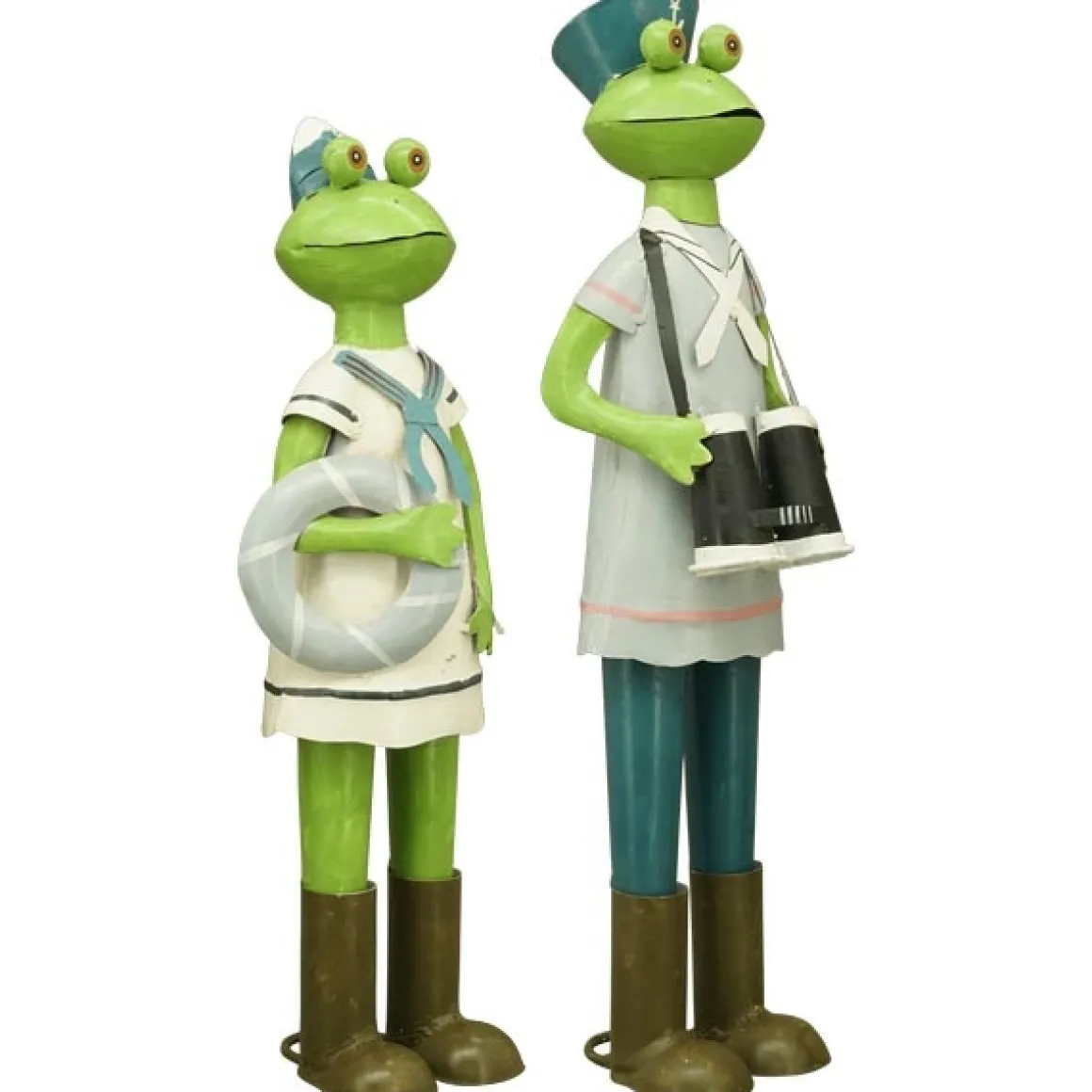Deko Frosch, Metallfrosch Matrose mit Fernglas, 55cm, Metall
