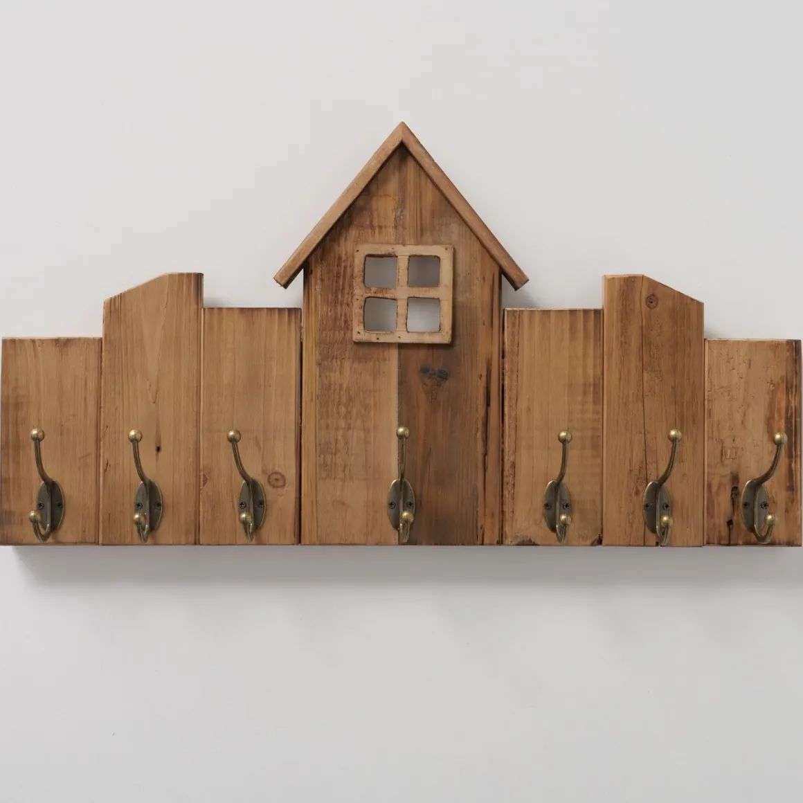 Diese liebevoll gestaltete Garderobe in Hausform bringt natürlichen Landhaus-Charme in Flur, Schlafzimmer oder Küche.