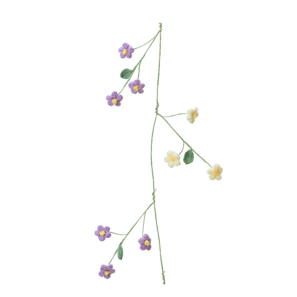 Deko Girlande aus Wolle, Wollgirlande mit Blumen lila-creme, 90cm