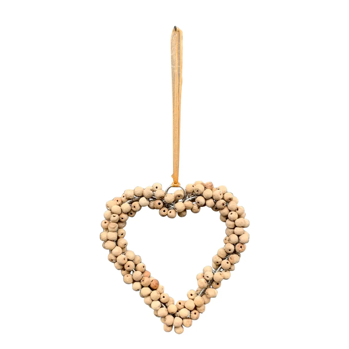 Deko Hänger Herz Naturholz, Herz aus Holzperlen, 15cm