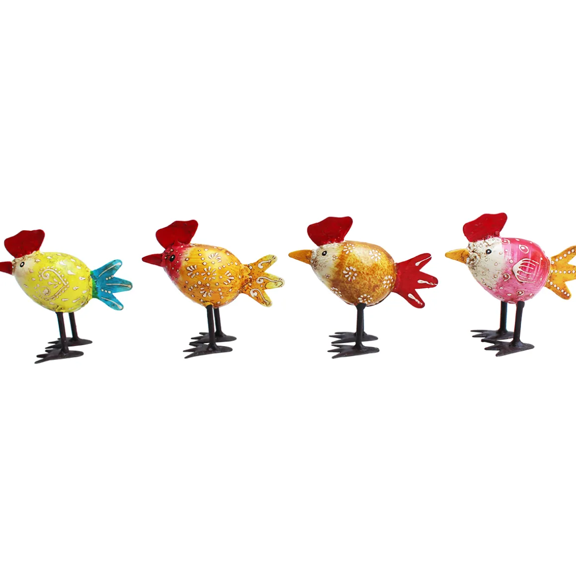 Deko Hahn eiform, kleiner Metallhahn orange mit orangem Schweif, 8x9cm