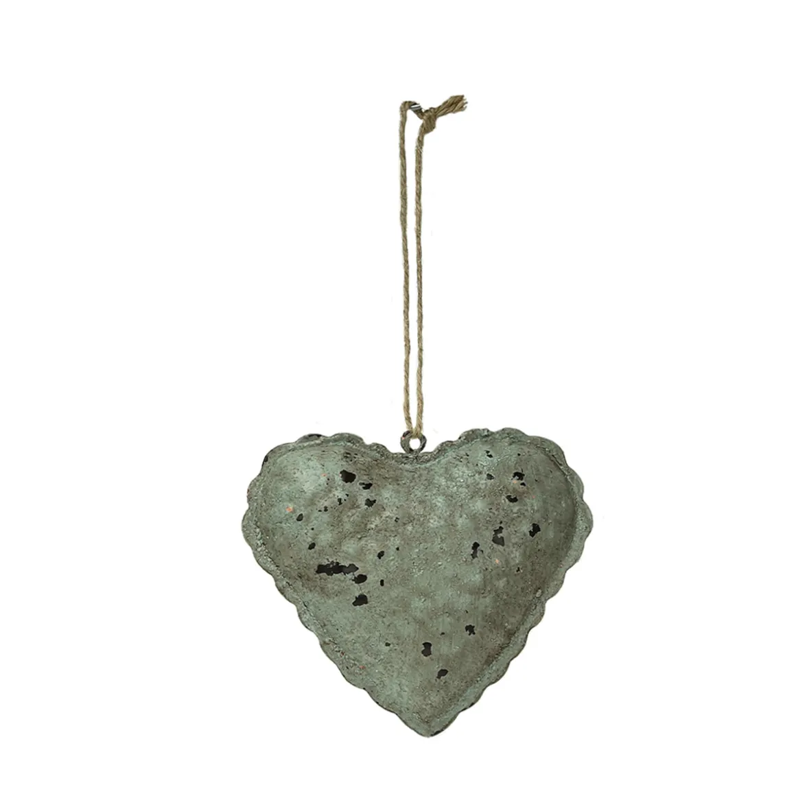 Deko Herz Antik, Metallherz grün used look gefüllt, 10x12cm, Hänger