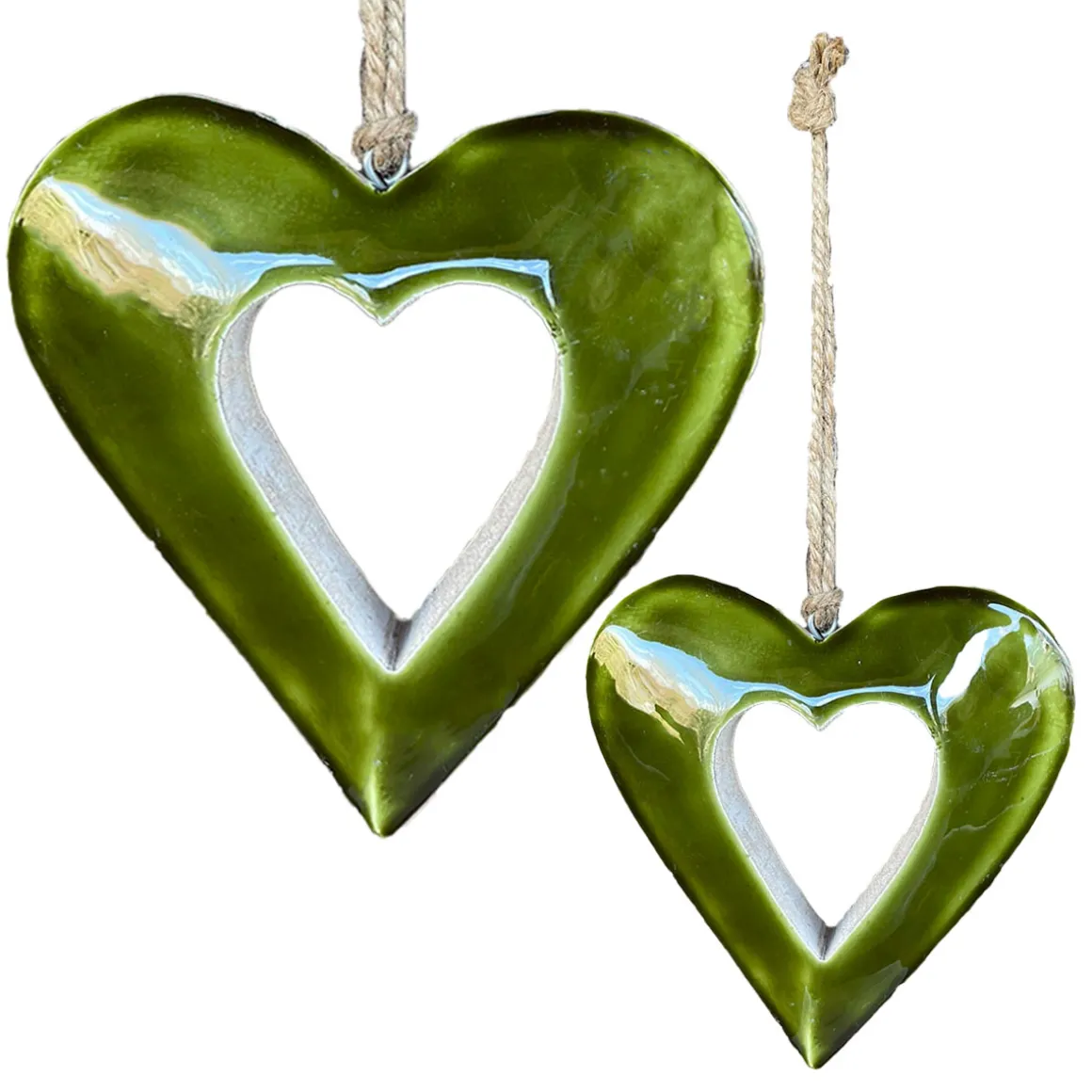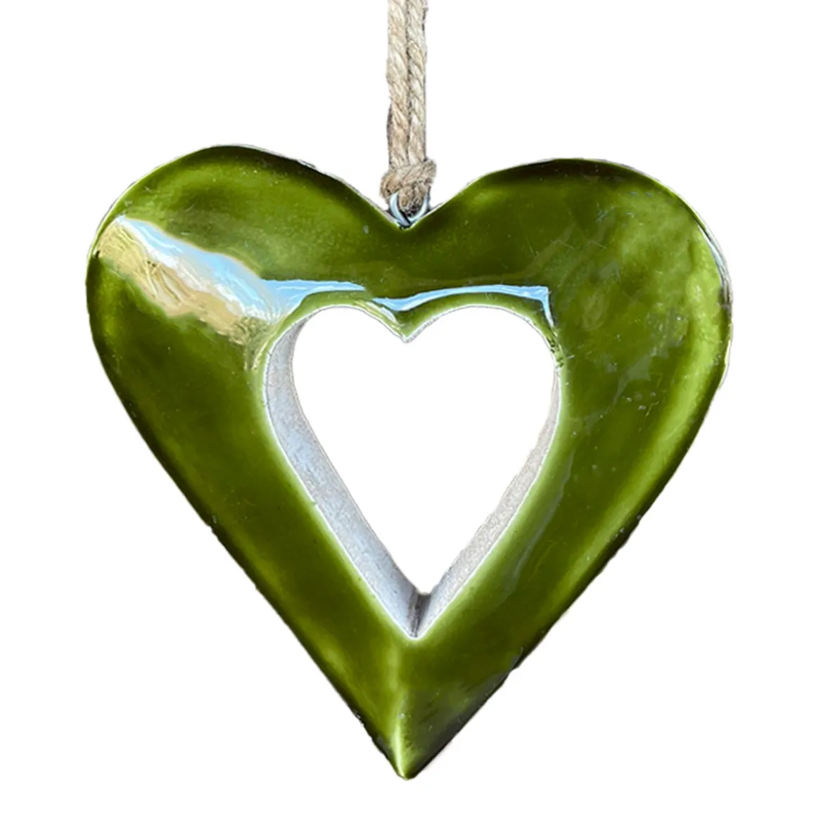 Deko Herz grün, Holzherz mit Lacküberzug grün glänzend,13x14cm, Hänger