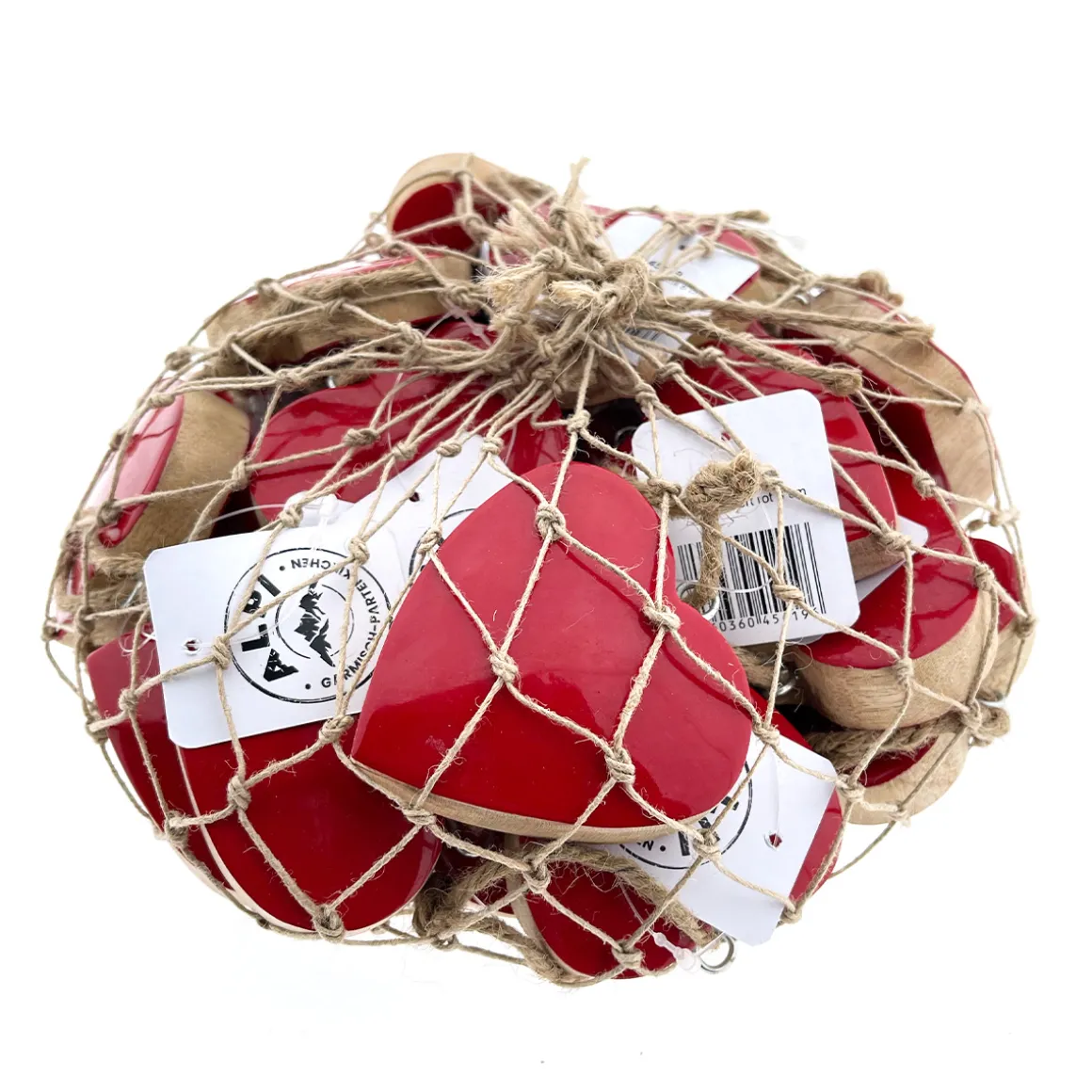 Deko Herz, Holzherz mit rotem Lacküberzug, emailiert, 8x7cm, Hänger