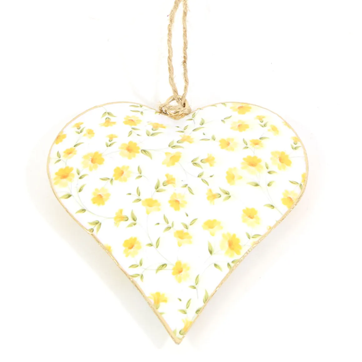 Deko Herz mit Blumen, Metallherz mit Blumen gelb, 12cm, Hänger