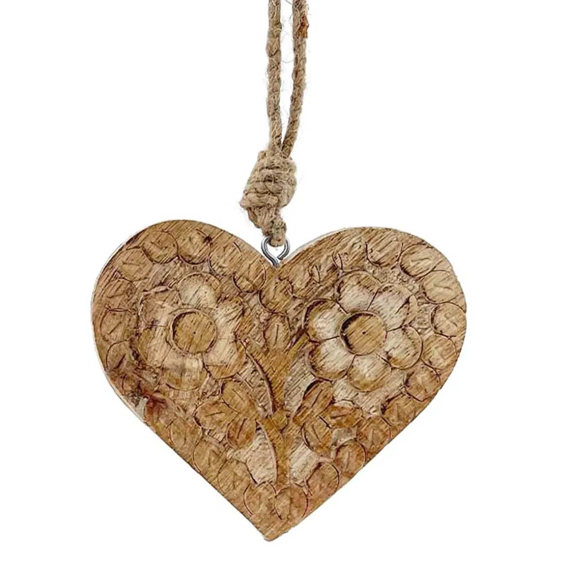 Produktinformationen „Deko Herz mit Blumenmuster, Holzherz mit Relief 2 Blumen, 11x10cm, Hänger“
