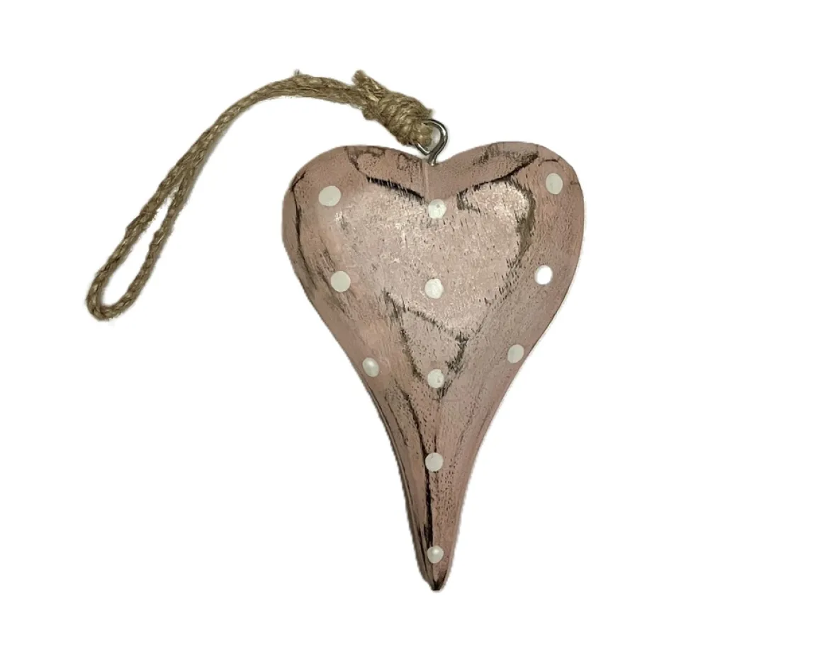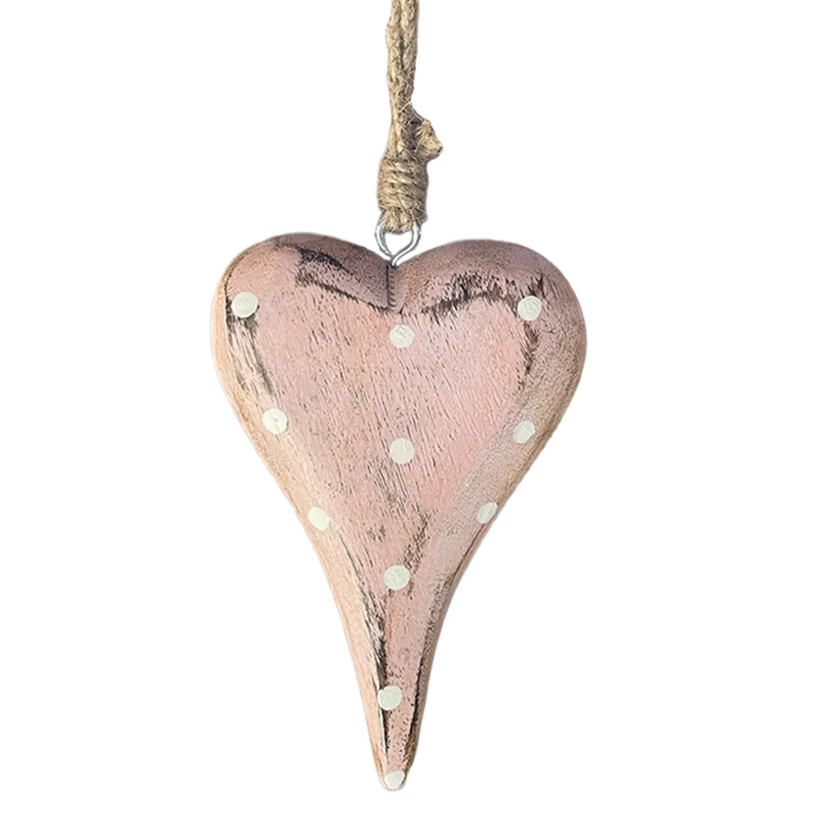 Deko Herz rosa used look, Holzherz unfinish mit weiße Punkte, 15cm