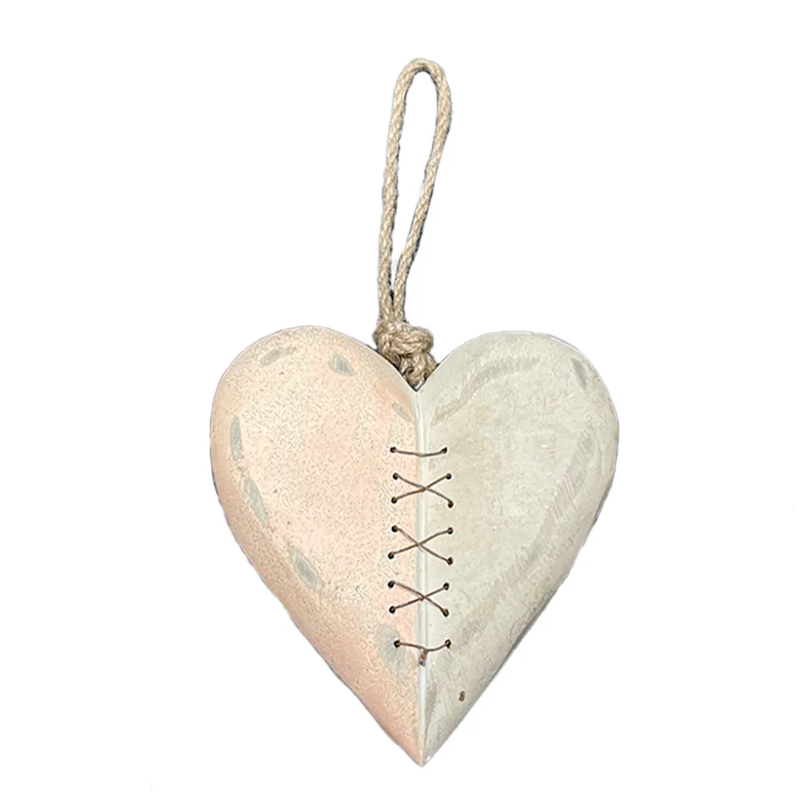 Produktinformationen „Deko Herz, rosa-weiß, used look, 13cm, Hänger“