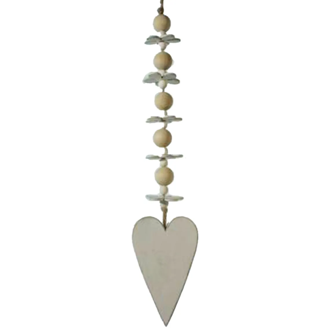 Produktinformationen „Deko Holz Girlande Herzen mit Blüten, weiß – used look, 60x8cm“