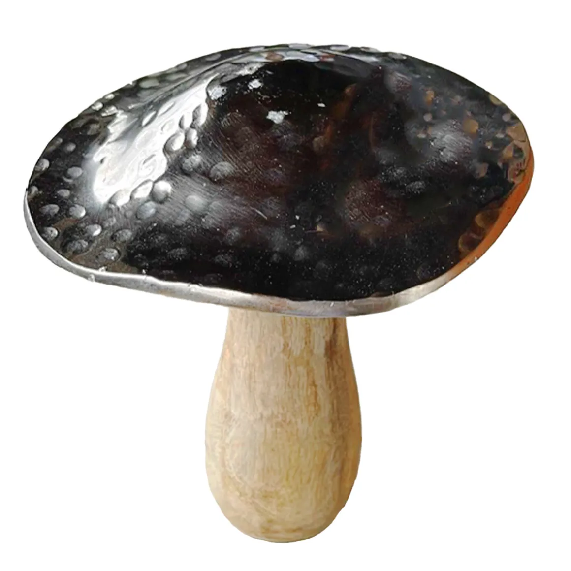 Deko Holzpilz, Fliegenpilz mit silberner Kappe, 14x11cm
