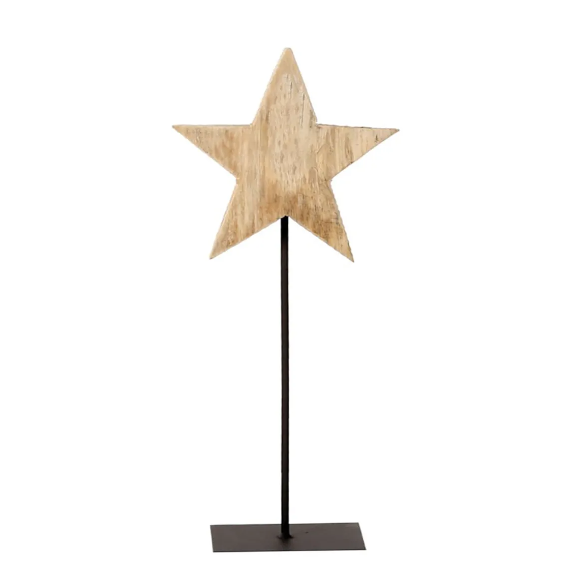 Deko Holzstern natur, Stern auf Metallfuß, 50cm, WMG Grünberger