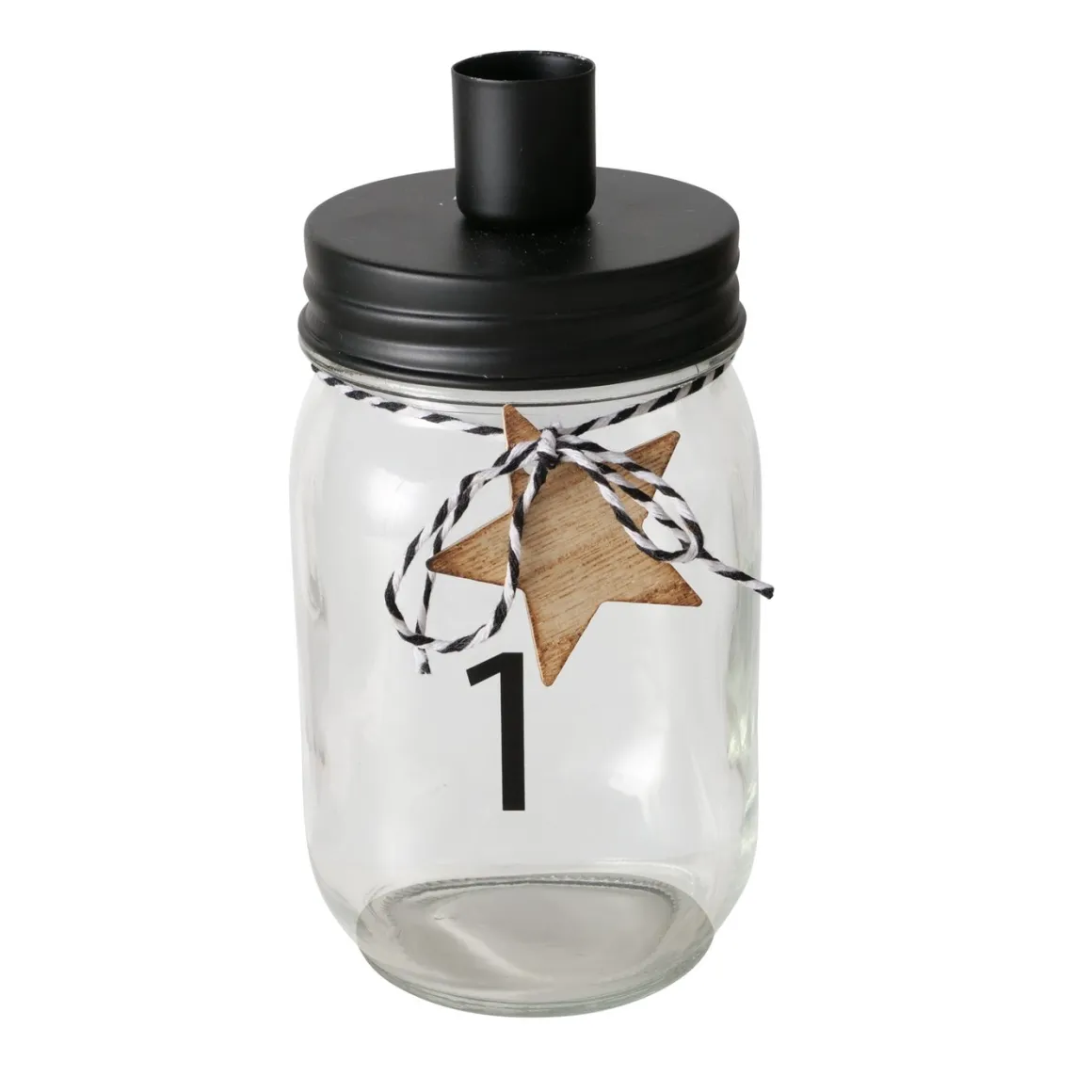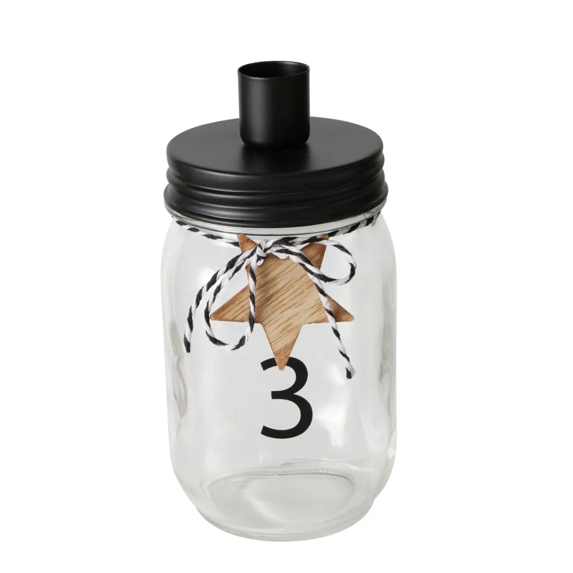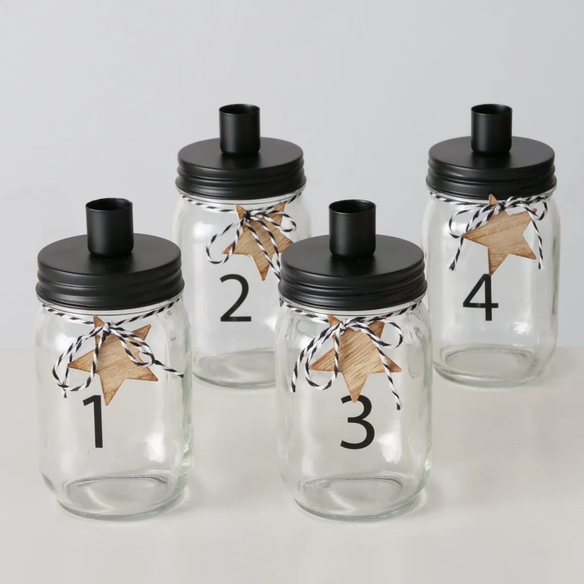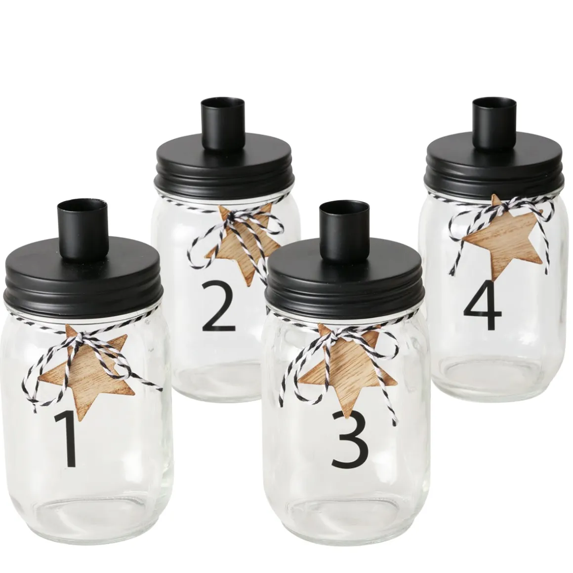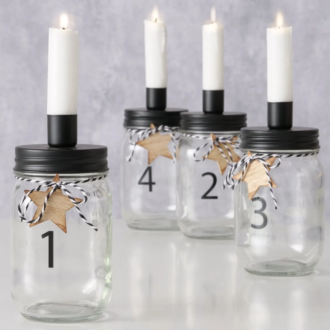 Deko Kerzengläser Advent, Kerzenhalter mit Zahlen 1-4 und Holzstern, Boltze Home Collections