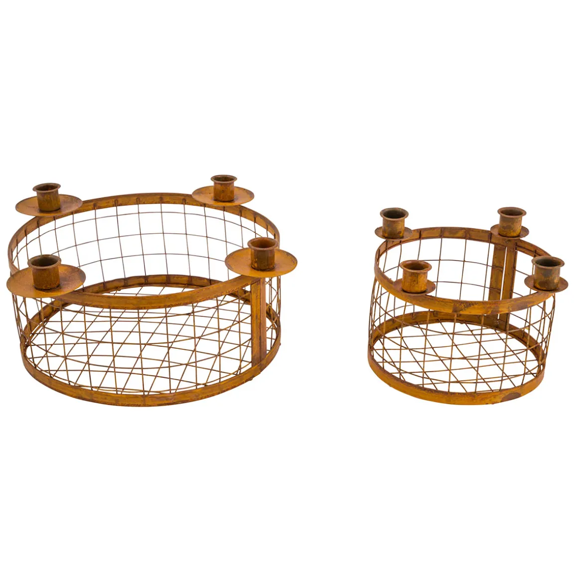 Deko Kerzenhalter Gitterkob, Kerzenhalter aus Rost für Stabkerzen, 35x14cm, Metall
