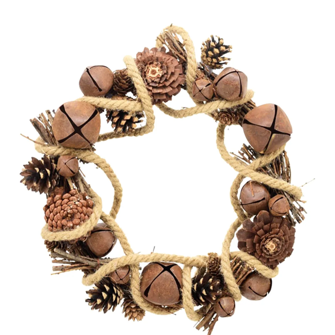 Deko Kranz Schellen, Naturkranz mit Schellen und Zapfen, Ø38cm