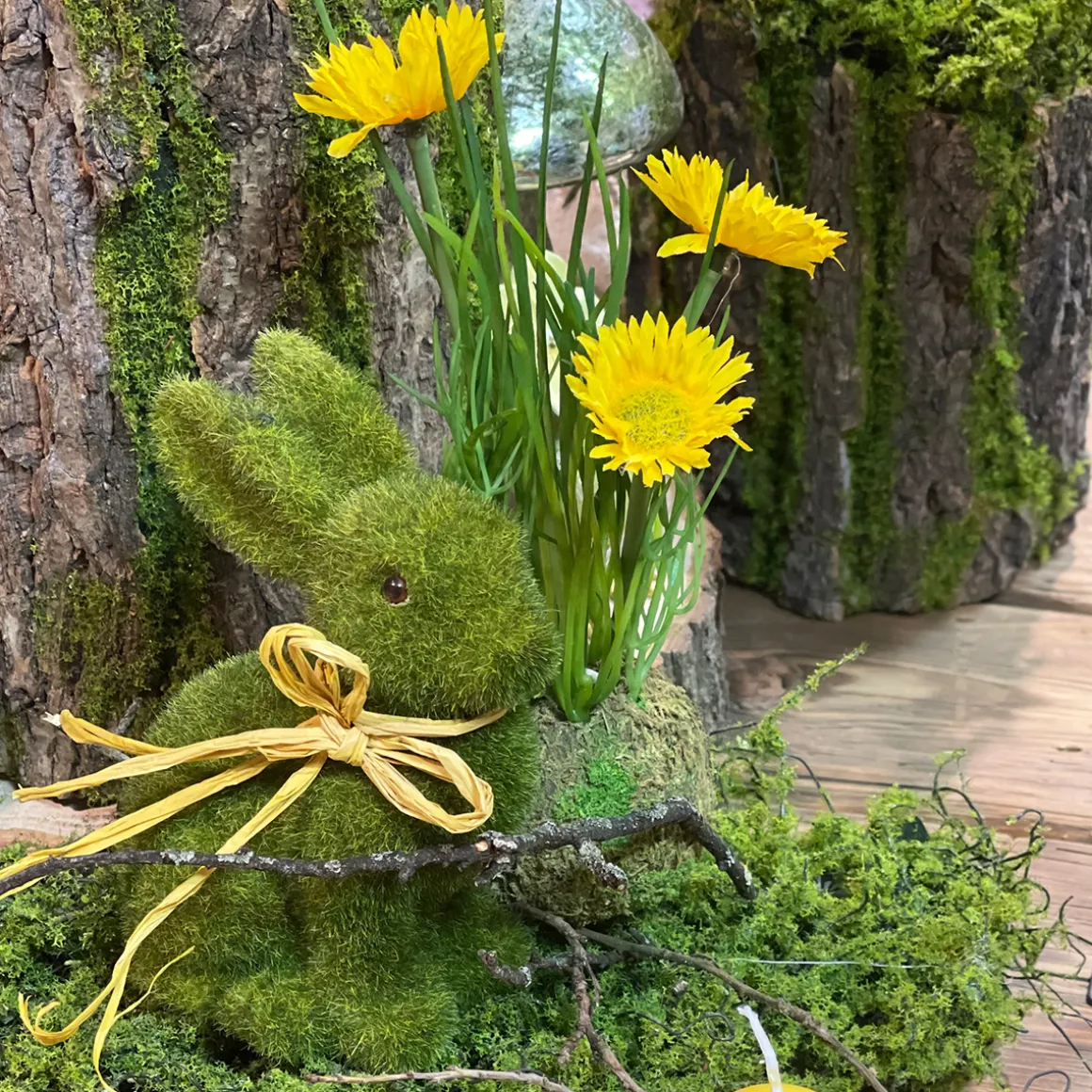 Produktinformationen „Deko Kunstblume Frühling, Löwenzahn im Moosball, gelb, 23cm“