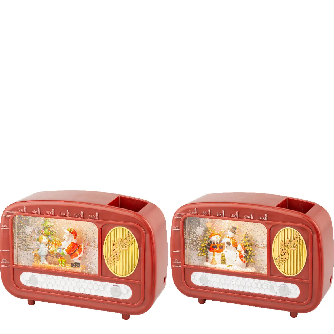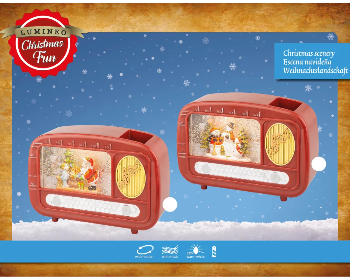 Deko LED Radio Schneeschauer, Schneekugel Weihnachtsradio mit Musik und Licht, Lumineo