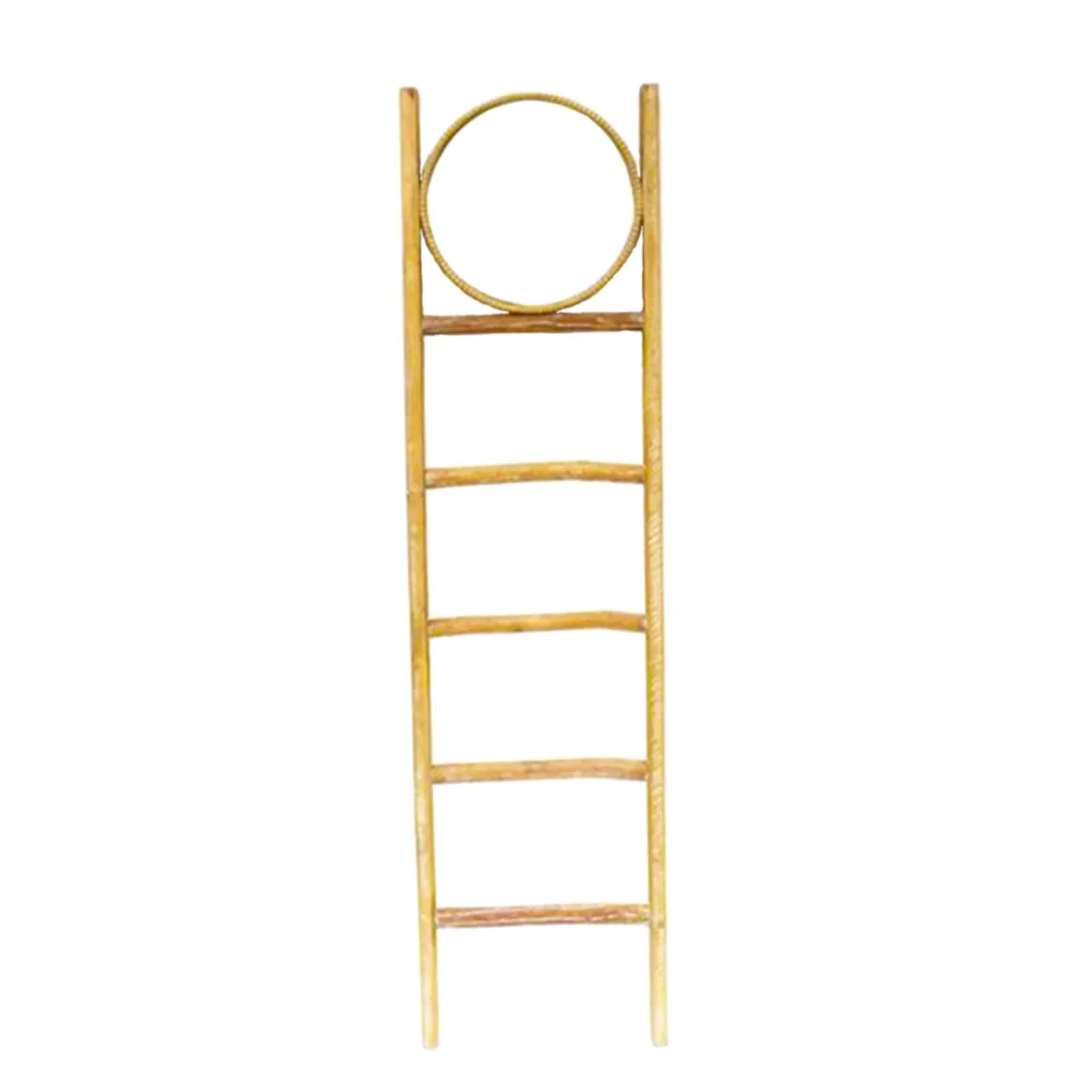 Deko Leiter mit Spiegel, Holzleiter mit rundem Spiegel, 180cm