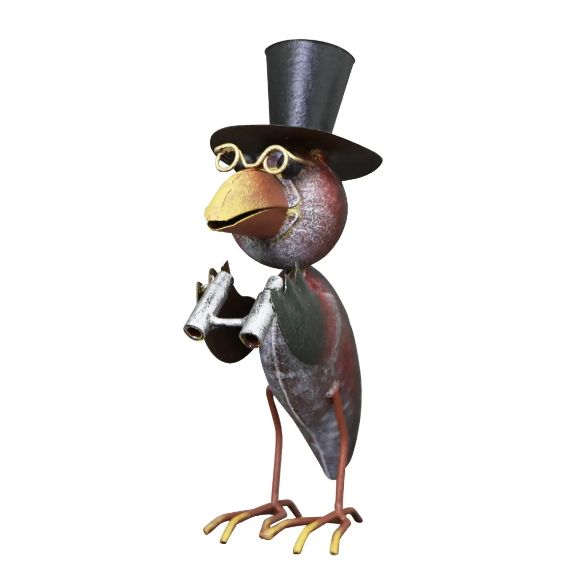 Produktinformationen „Deko Rabe Rudi, Metallrabe mit Fernglas, Zylinder und Brille, 24cm“