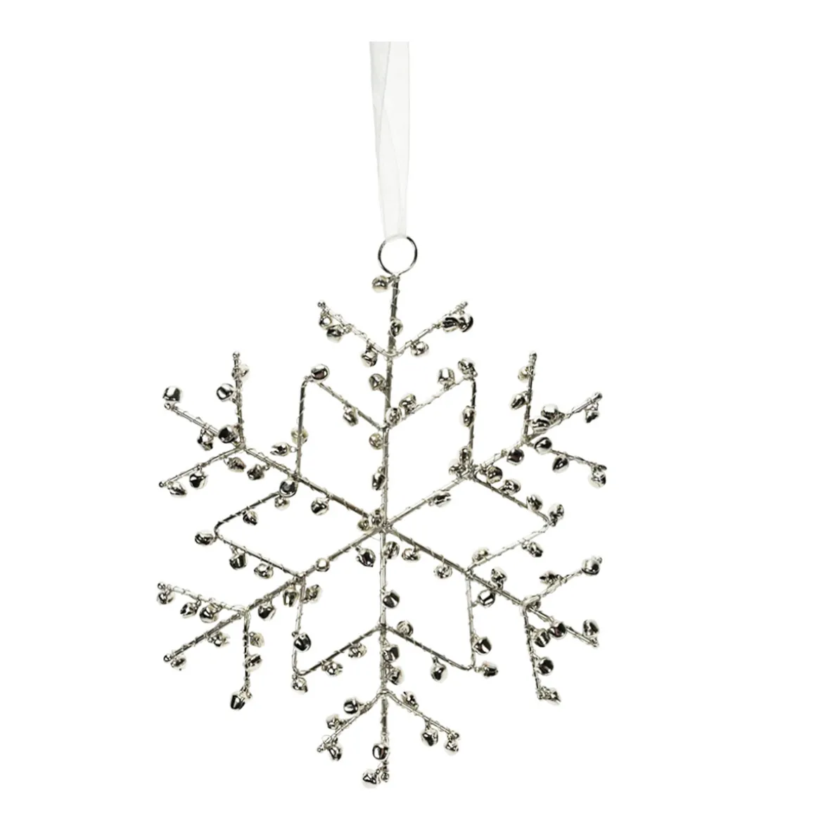 Diese dekorative Schneeflocke aus kleinen Metallschellen bringt festlichen Glanz und einen feinen Klang in deine Winterdekoration.