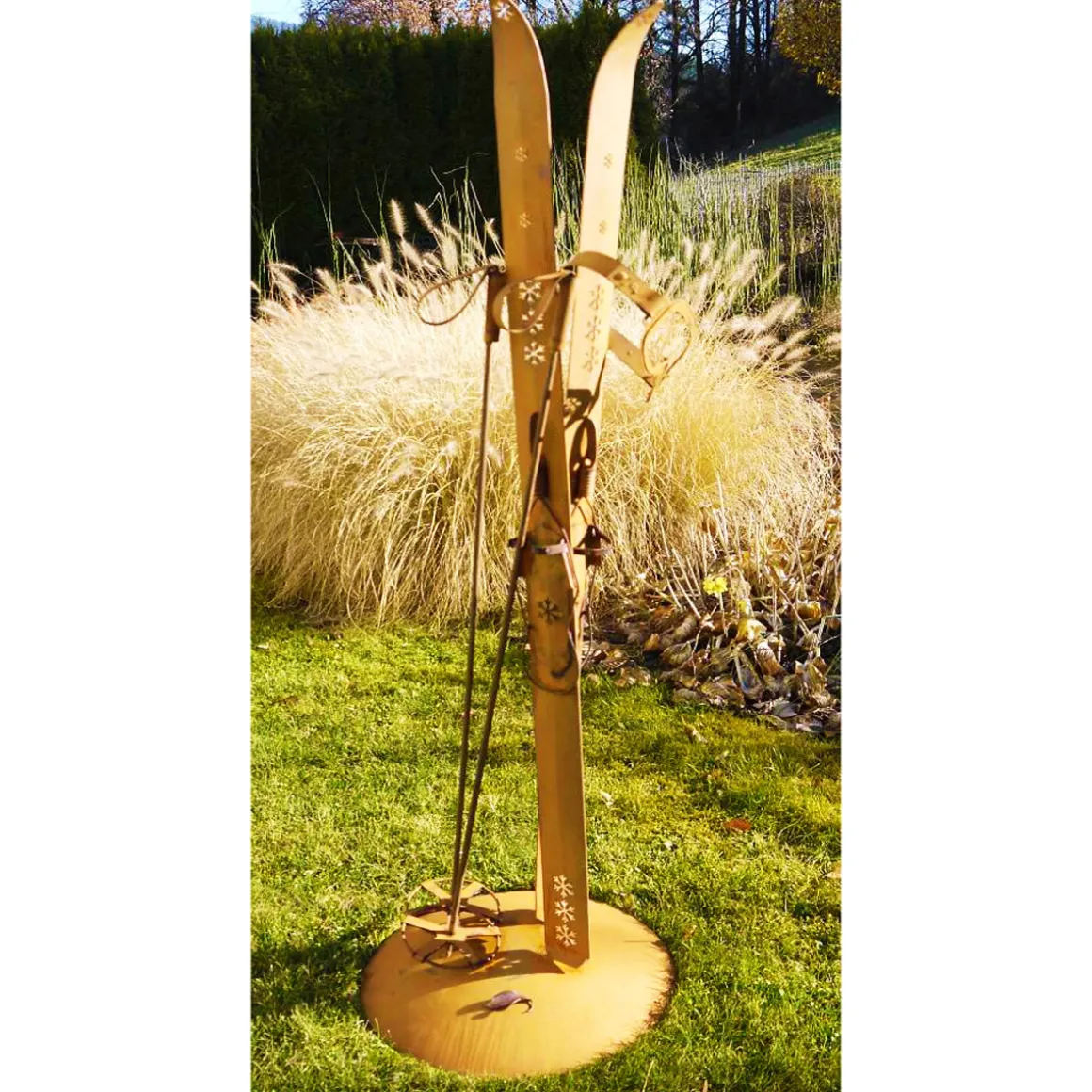 Deko Ski mit Stöcke und Brille – Rost-Optik mit Ständer, 122 cm
