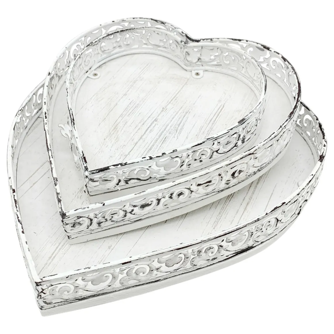 Deko Tablett Herz weiß, Metallschale mit Muster – used look, 25x28x4cm