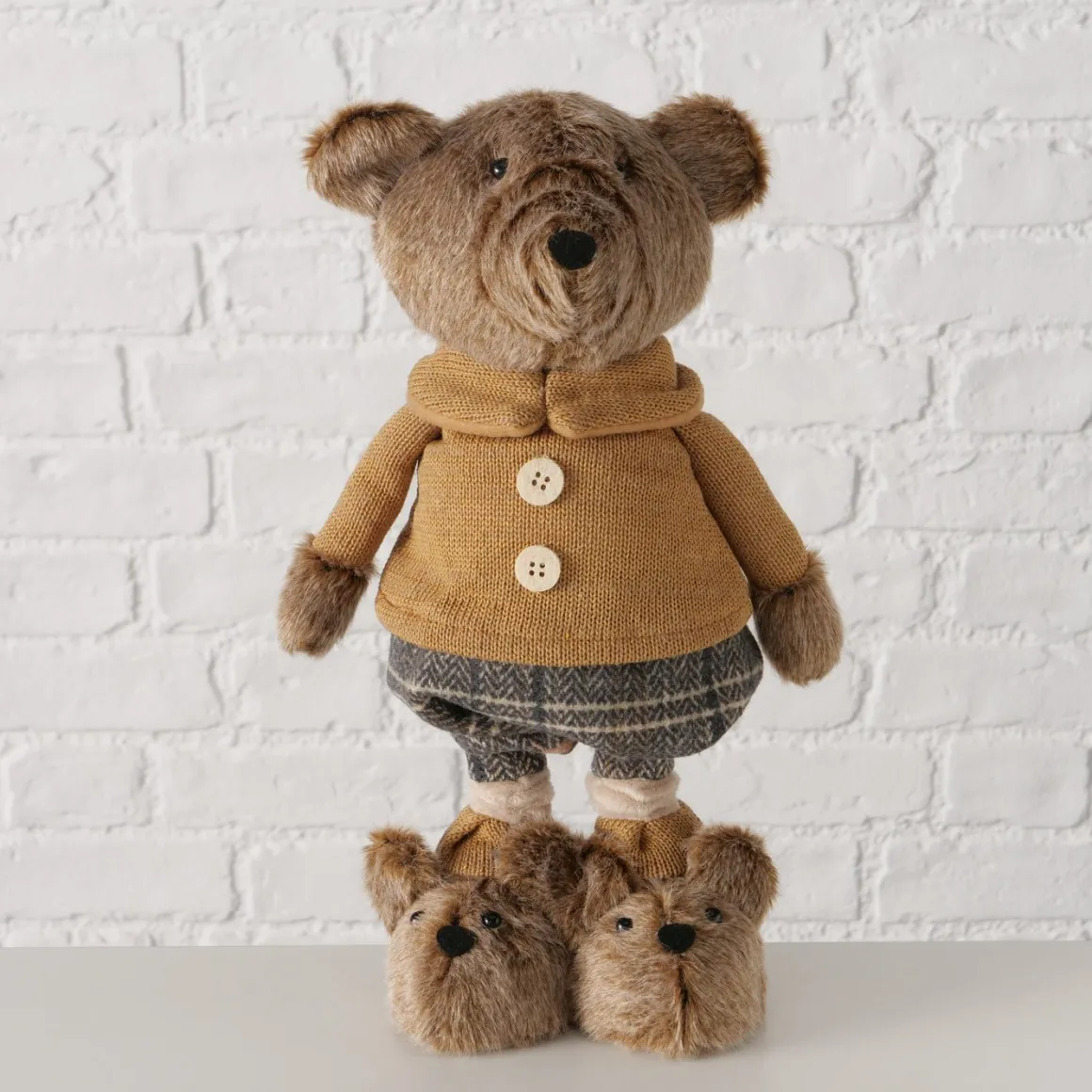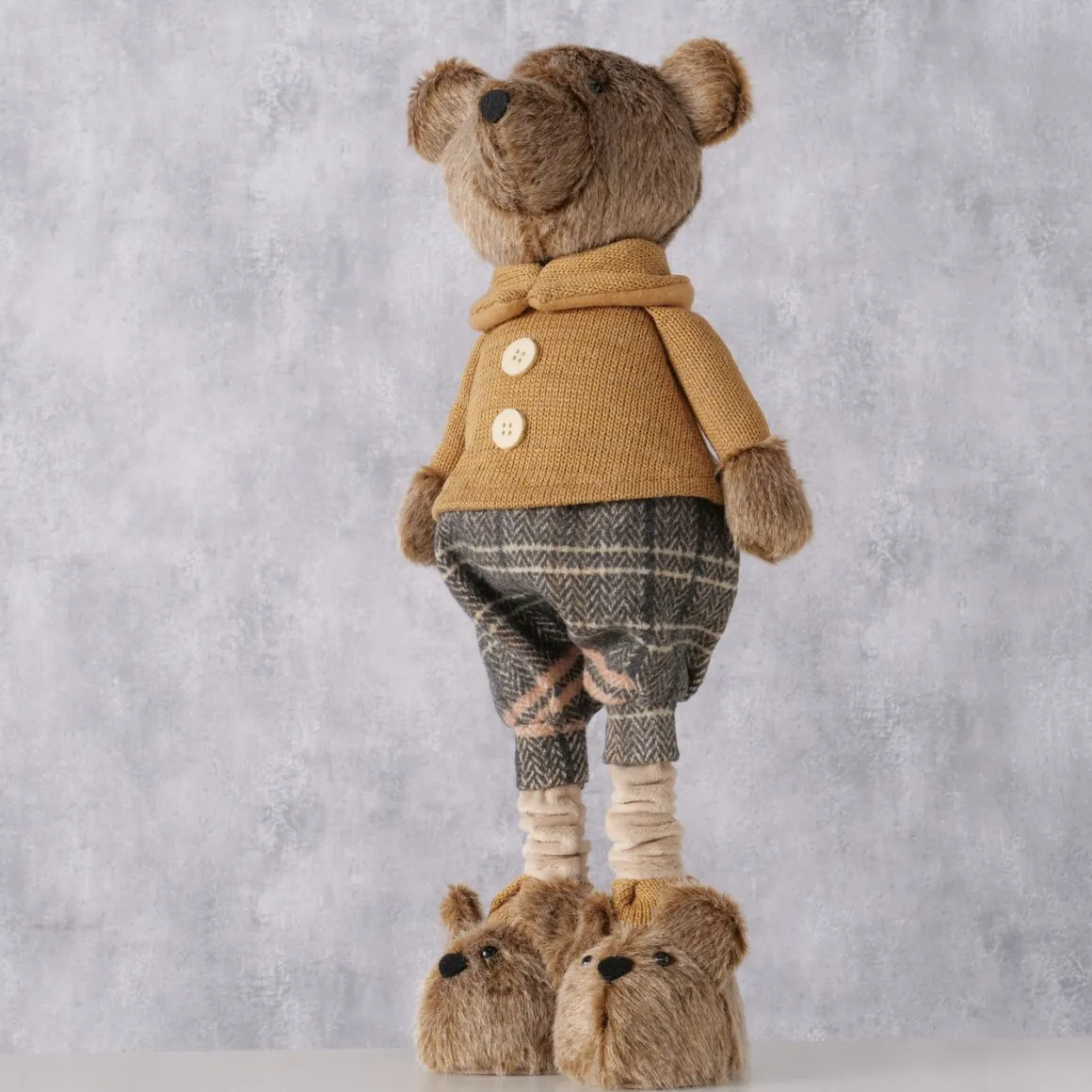 Deko Teddy mit Pumphose und Hundeschuhe, Teddyjunge mit Teleskopbeine, 34cm bis 54cm, Boltze Home Collection