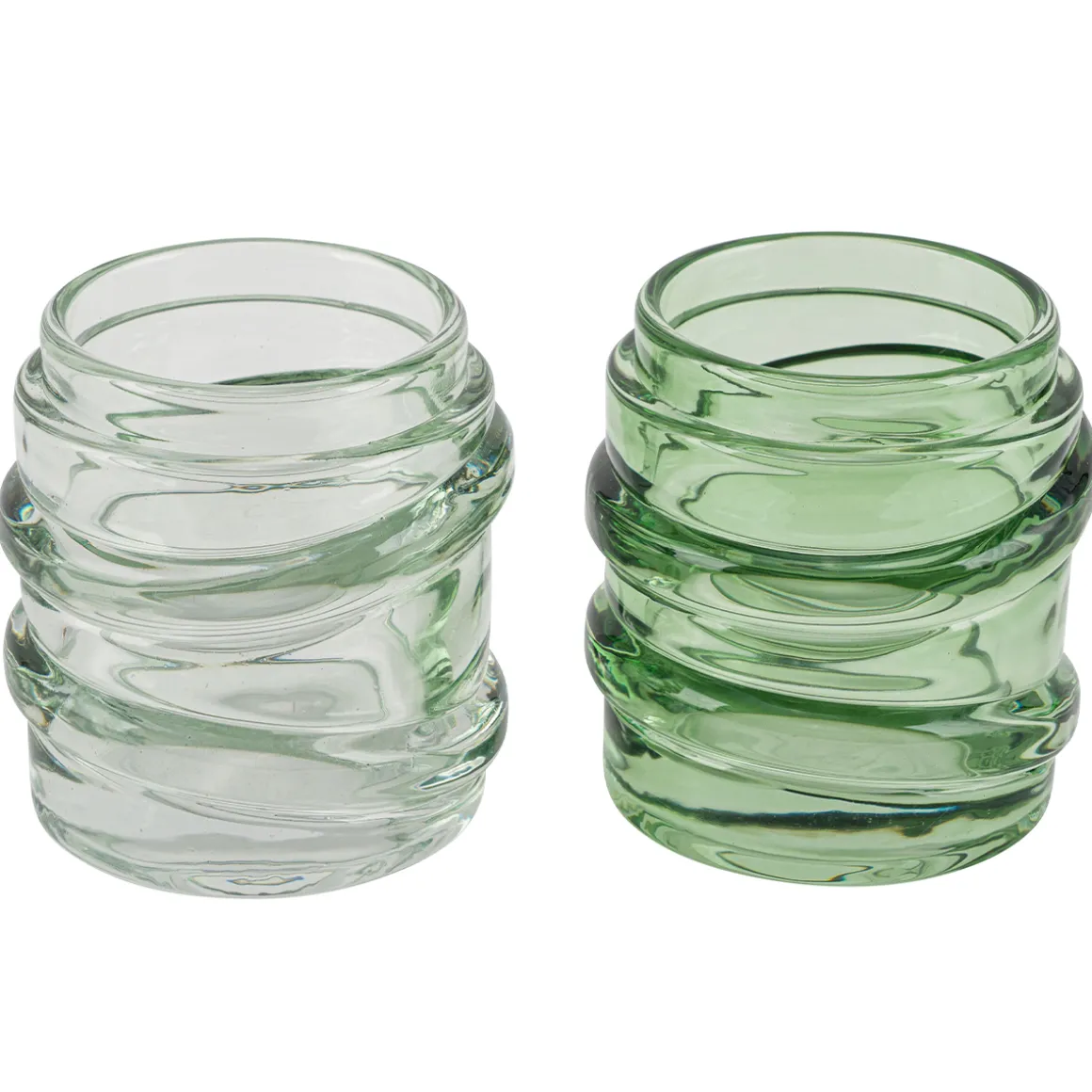 Deko Teelichtglas Wellenform, Windlicht aus Glas hellgrün, 7x8cm