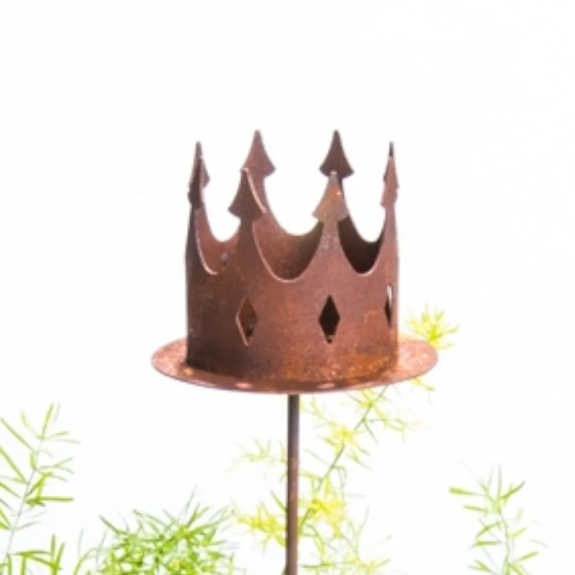 Deko Teelichthalter Krone, Gartenstecker Rostkrone auf Stab, 6x6cm, Gerrys Garden