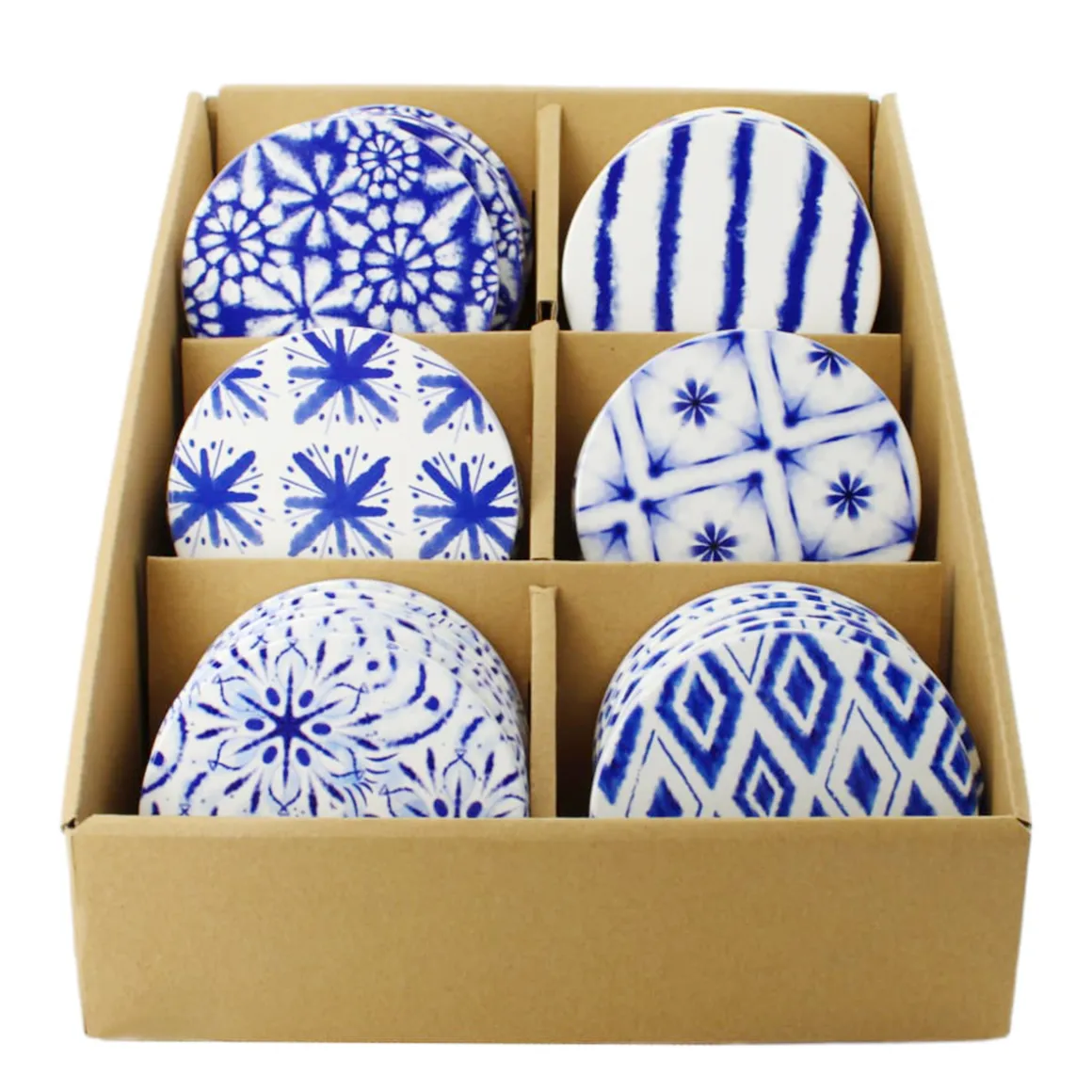 Deko Untersetzer rund, Keramikuntersetzer blau-weiß, 6 unterschiedliche Muster, Ø10cm, DIJK Natural Collections
