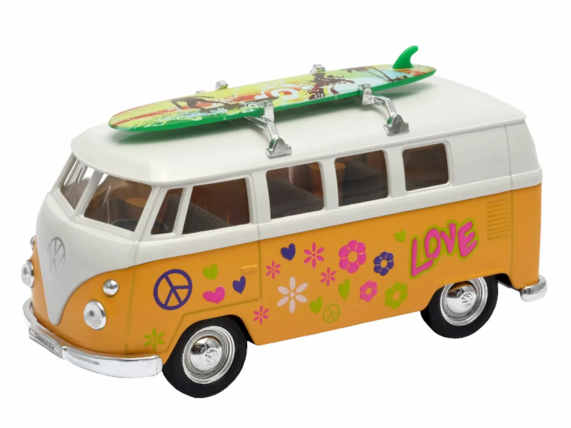 Deko VW Bus Hippie, kleiner Bus T1 mit Surfboard und Hippie Design, 12cm