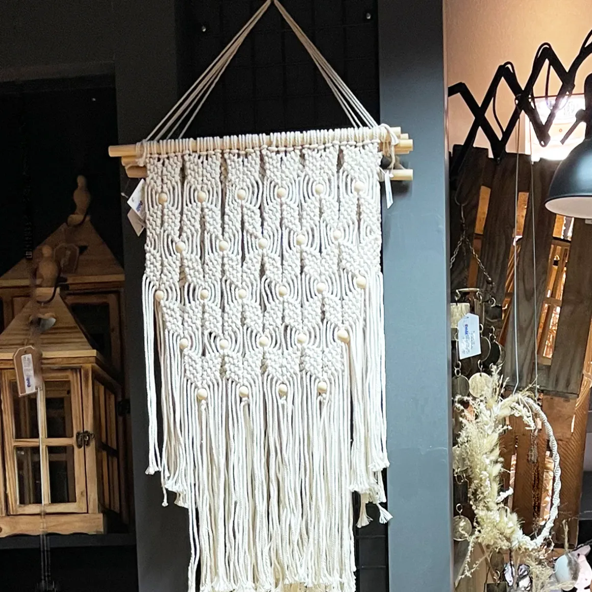 Deko Wandhänger Boho, creme, Makramee, 135x65cm, Hänger