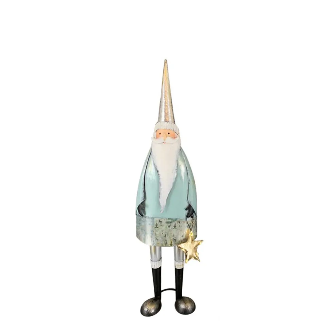 Deko Weihnachtsmann Santa, Weihnachtsmann mit Stern, mint-gold, 68cm