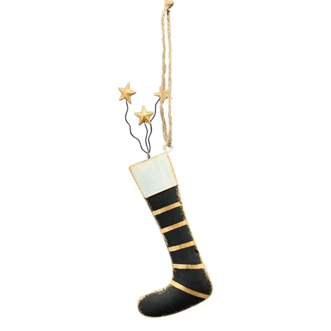 Produktinformationen „Deko Weihnachtsstrumpf, Metallsocke schwarz-gold mit Sterne, 21cm, Hänger“