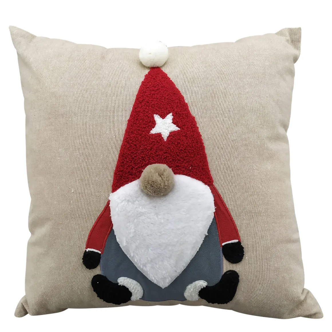 Deko Wichtelkissen Dans, Kissen mit einem Weihnachtswichtel, rot-weiß, 40x40cm