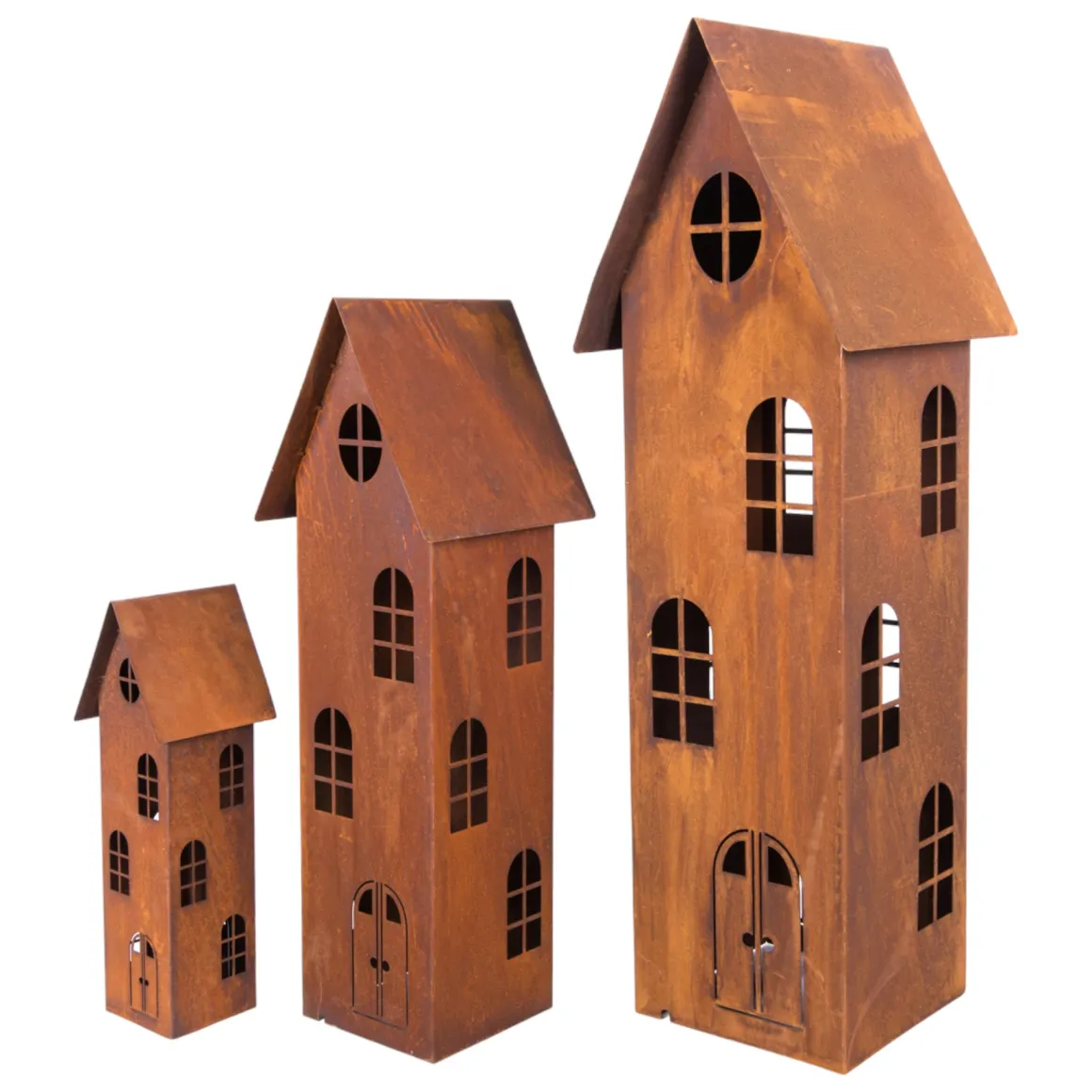 Deko Windlicht Haus, Rosthaus schlank, 45cm, Gerrys Garden