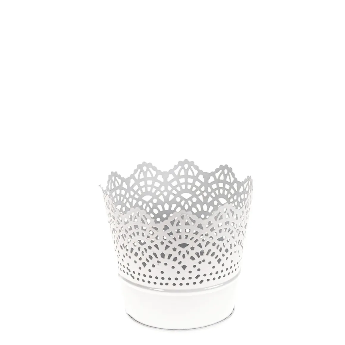 Deko Windlicht mit Ornamente weiß, Pflanztopf aus Metall, 11x10cm