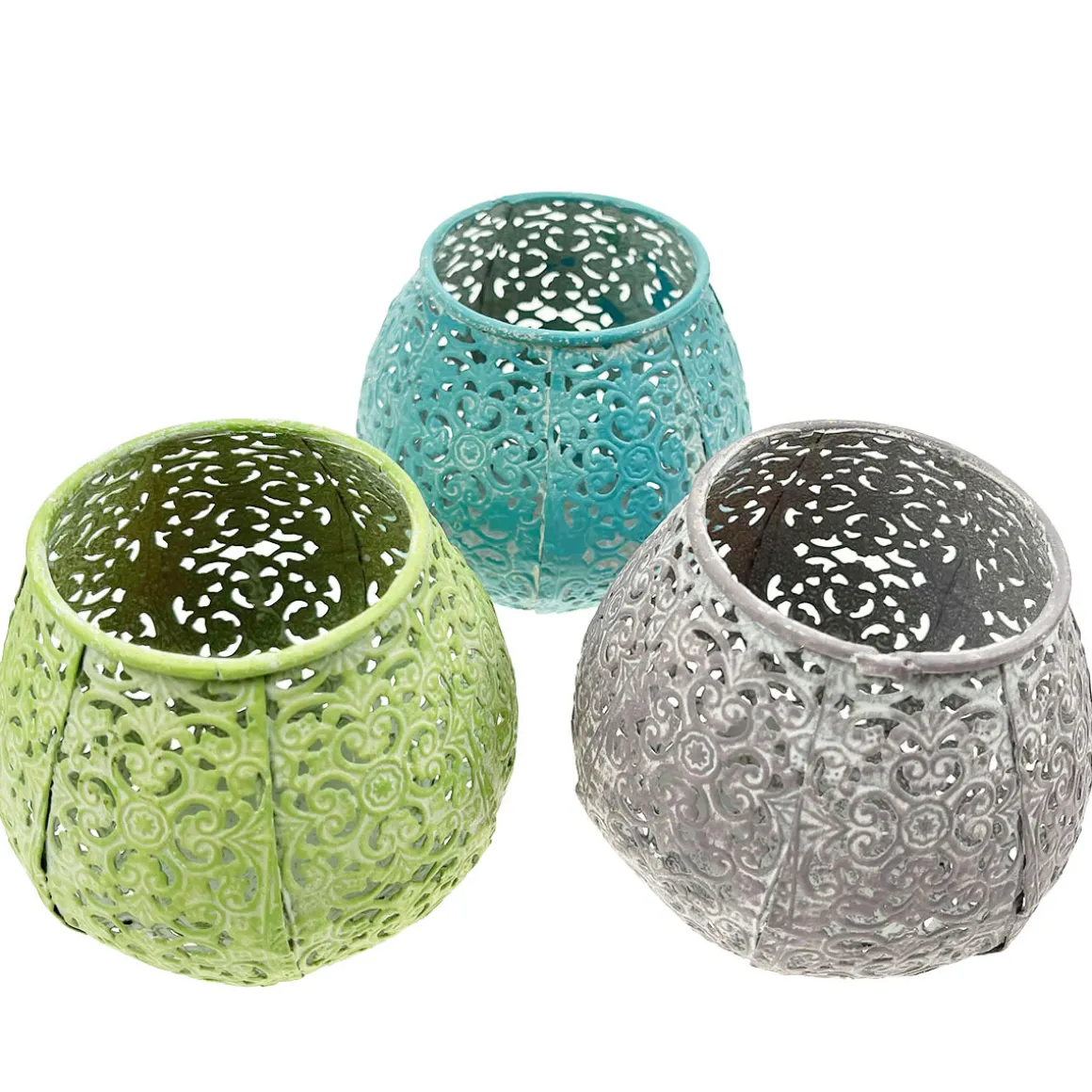 Deko Windlicht Ornament, Kerzenhalter flieder, shabby chic, 10x8cm, Metall